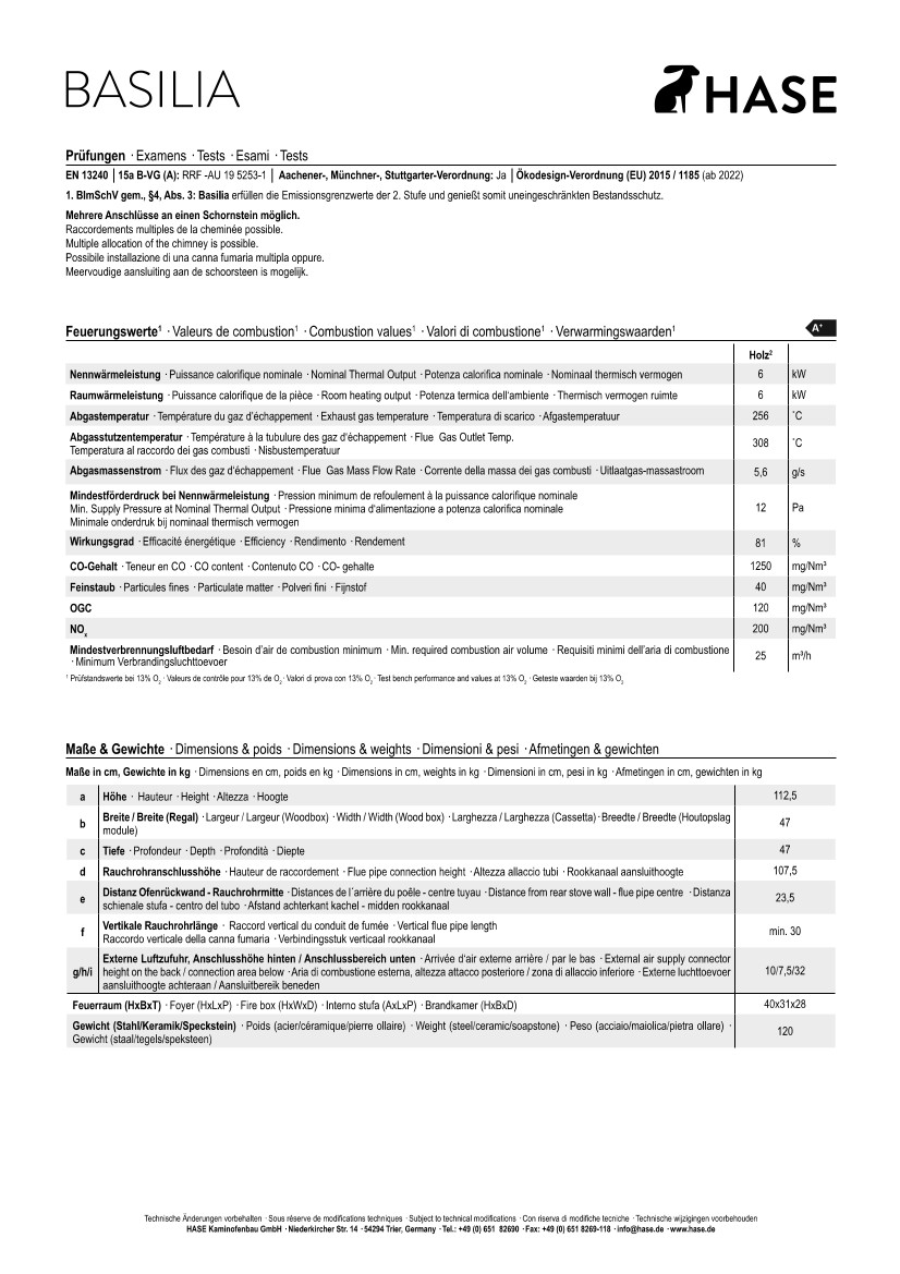 Größe Ofen H / B / T in mm 1125 x 470 x 470