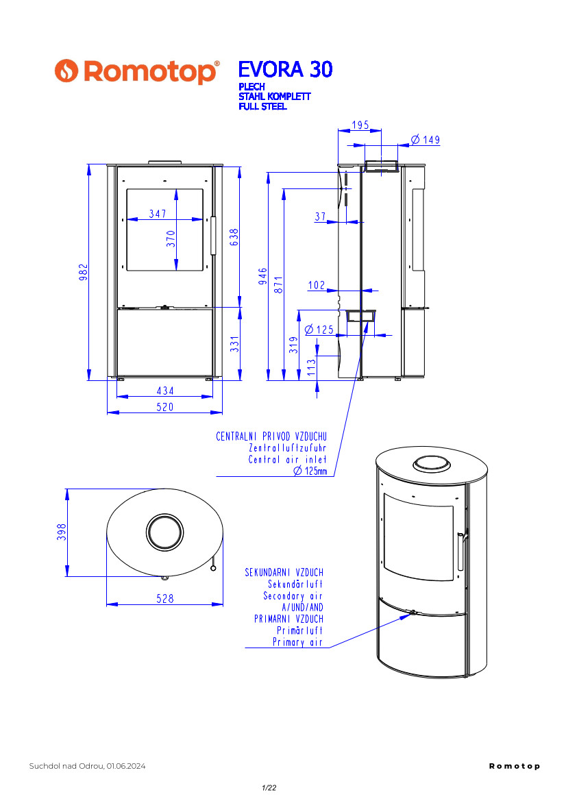 Größe Ofen H / B / T in mm                    982 / 528 / 398