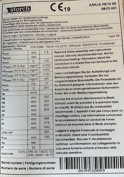Größe Ofen H / B / T in mm 1410 / 578 / 486