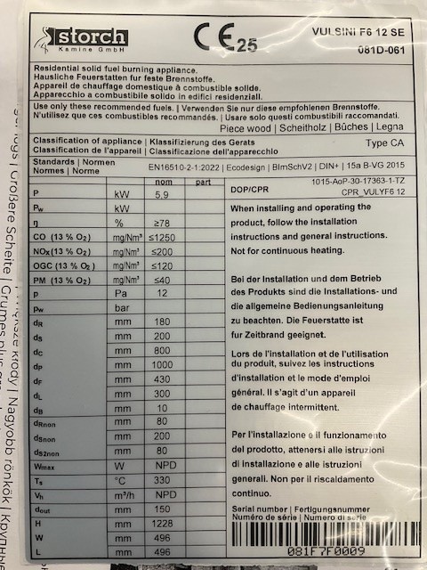 Größe Ofen H / B / T in mm                        1225 / 496 / 496