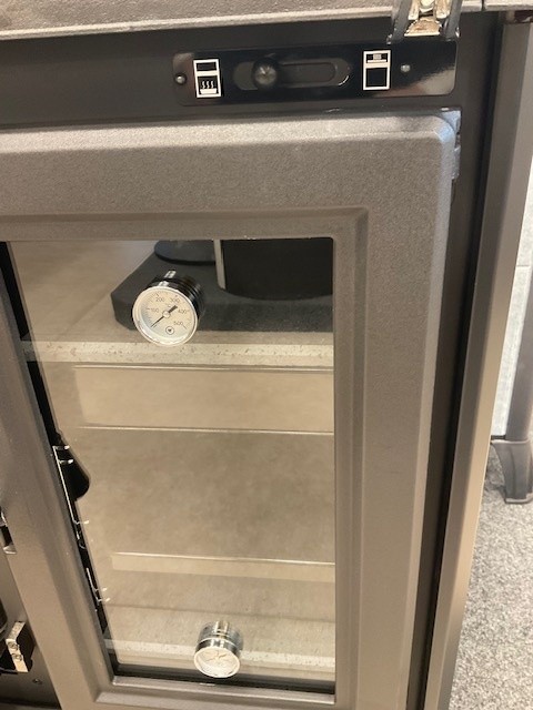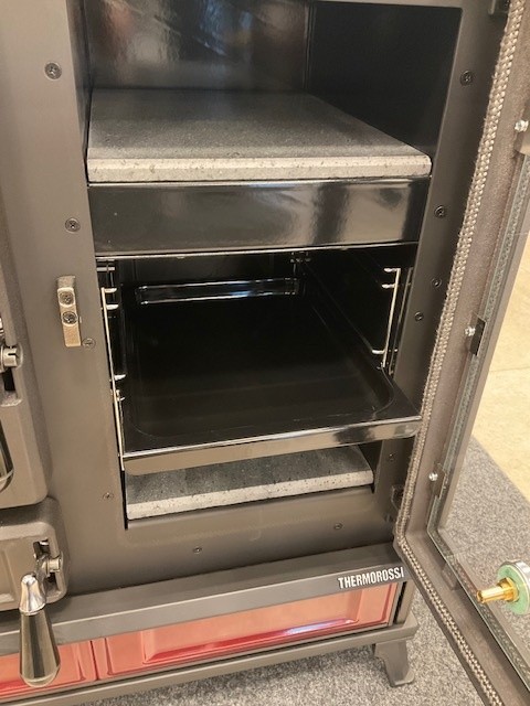 Beide Öfen haben einen Boden aus Speckstein und ein Thermometer zum Ablesen der Temperatur.