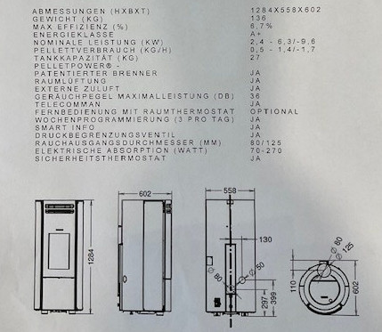 Größe Ofen H/B/T in mm                               1284/ 558 / 602