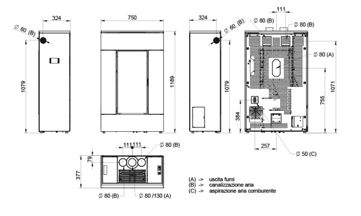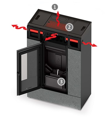 Luftdichter, platzsparender und kanalisierbarer Pelletofen.